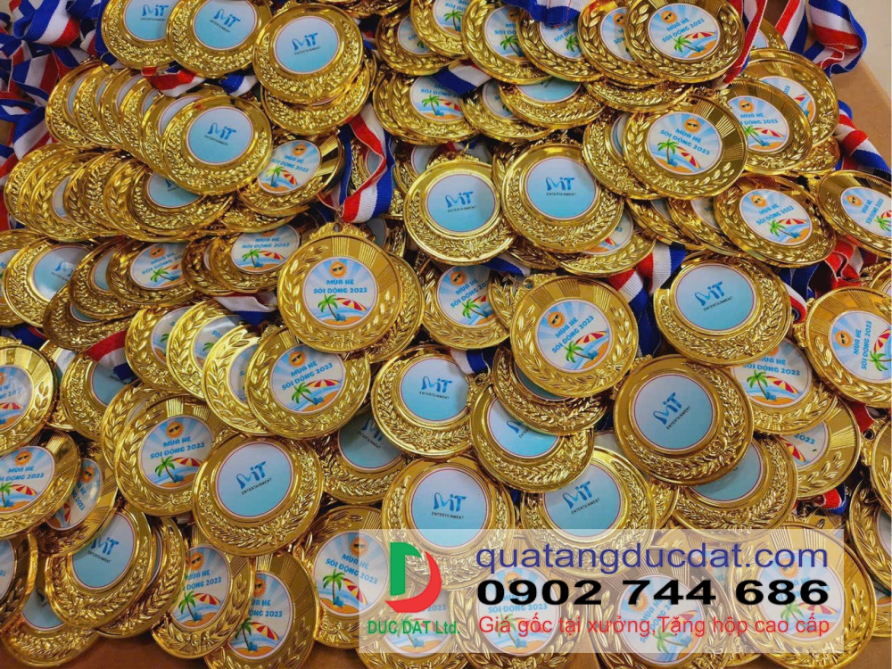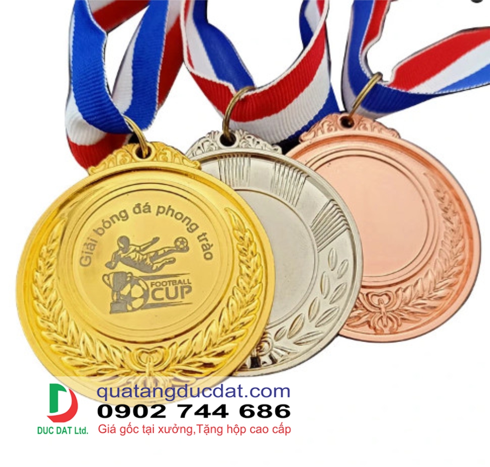 - Chất liệu: hợp kim mạ vàng, bạc, đồng. In theo yêu cầu phổ biến như các logo, tên giải thể dục thể thao.