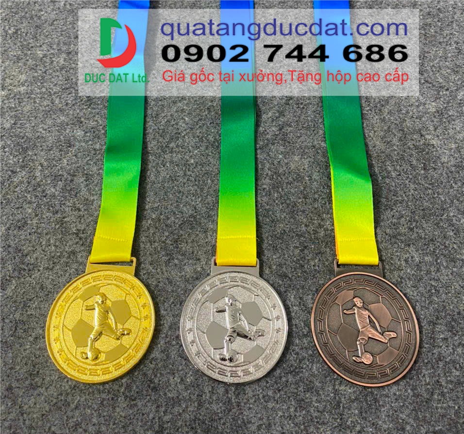 - Chất liệu: hợp kim mạ vàng, bạc, đồng. In theo yêu cầu phổ biến như các logo, tên giải thể dục thể thao.